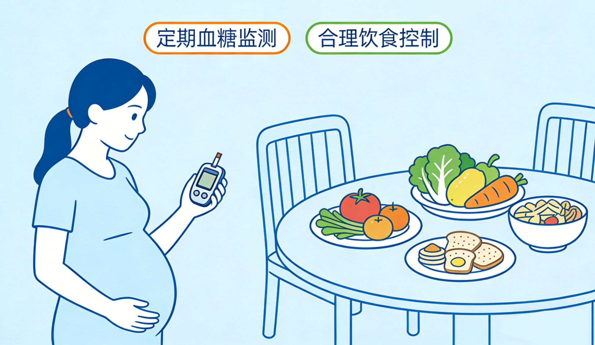 血糖监测:妊娠期糖尿病患者需每日监测空腹及三餐后2小时血糖;糖尿病合并妊娠患者,还需加测餐前及睡前血糖,方便医生动态调整干预方案。
